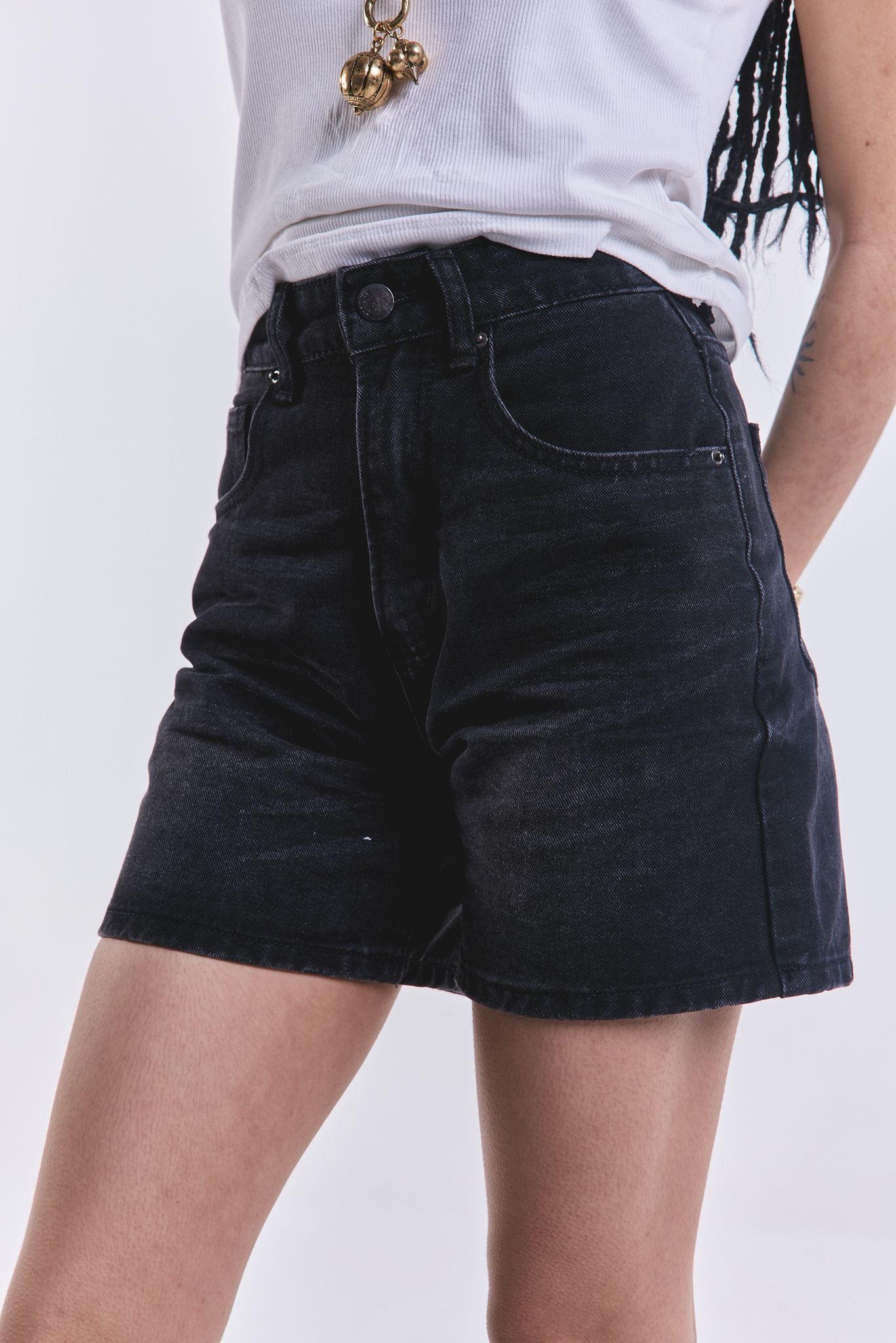 Short de jeans, estilo Mom, tiro alto. sin lycra.